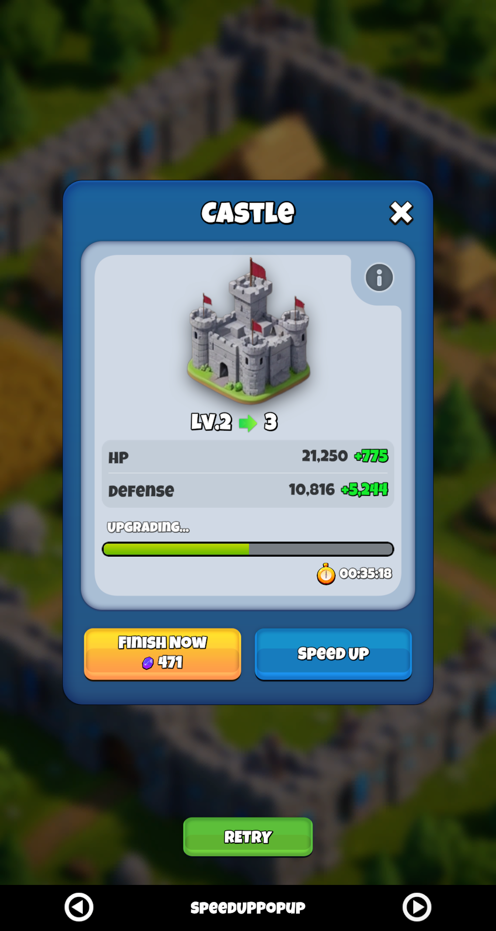 | Speed Up Popup | Skip timer dialog — because every defense game needs one. |