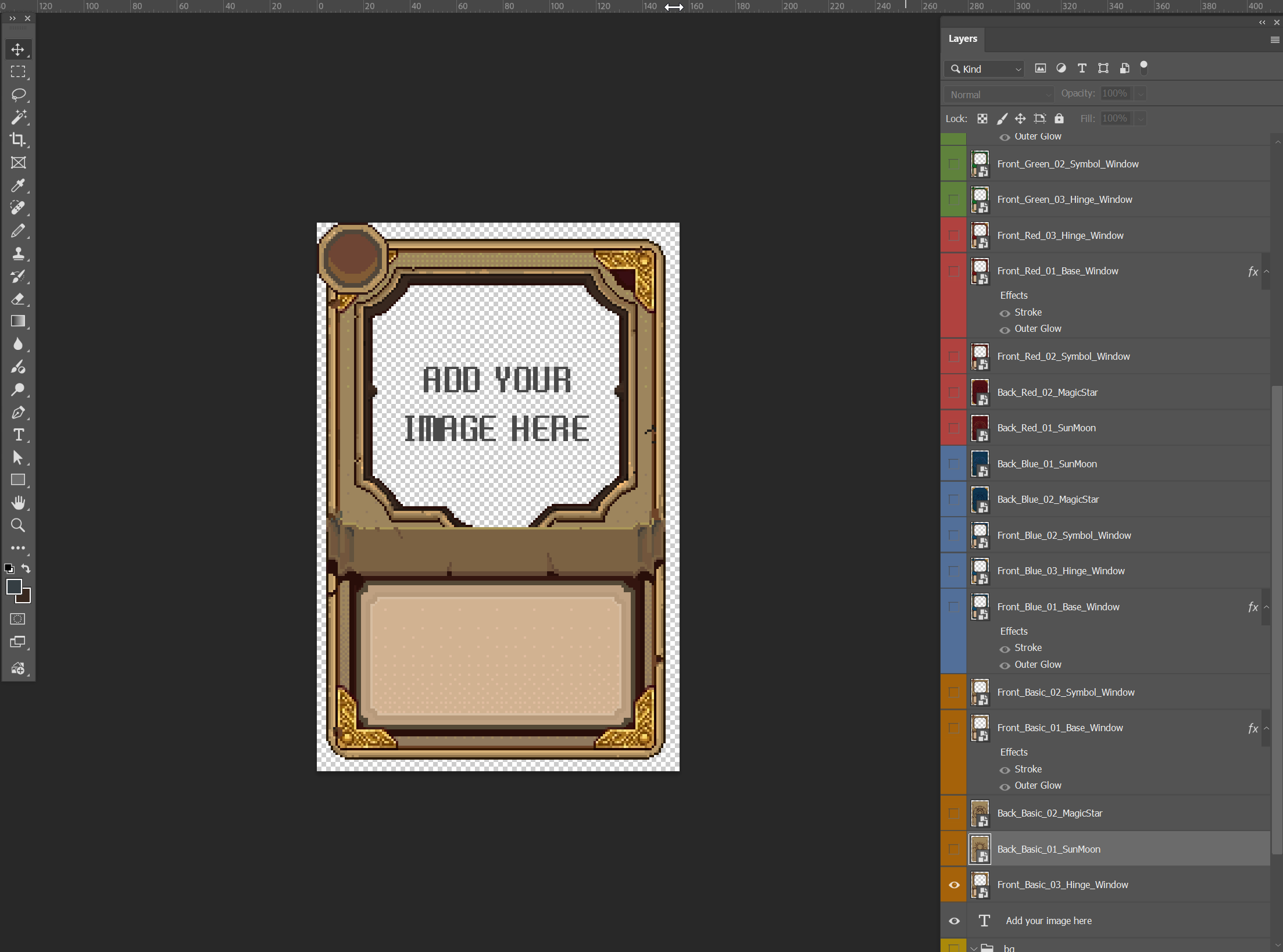 - Portrait / Illustration Ready (NEW): Includes 3 states of transparent "Window" frames for all 5 colors. Easily drop your own character art or illustrations behind the card UI.